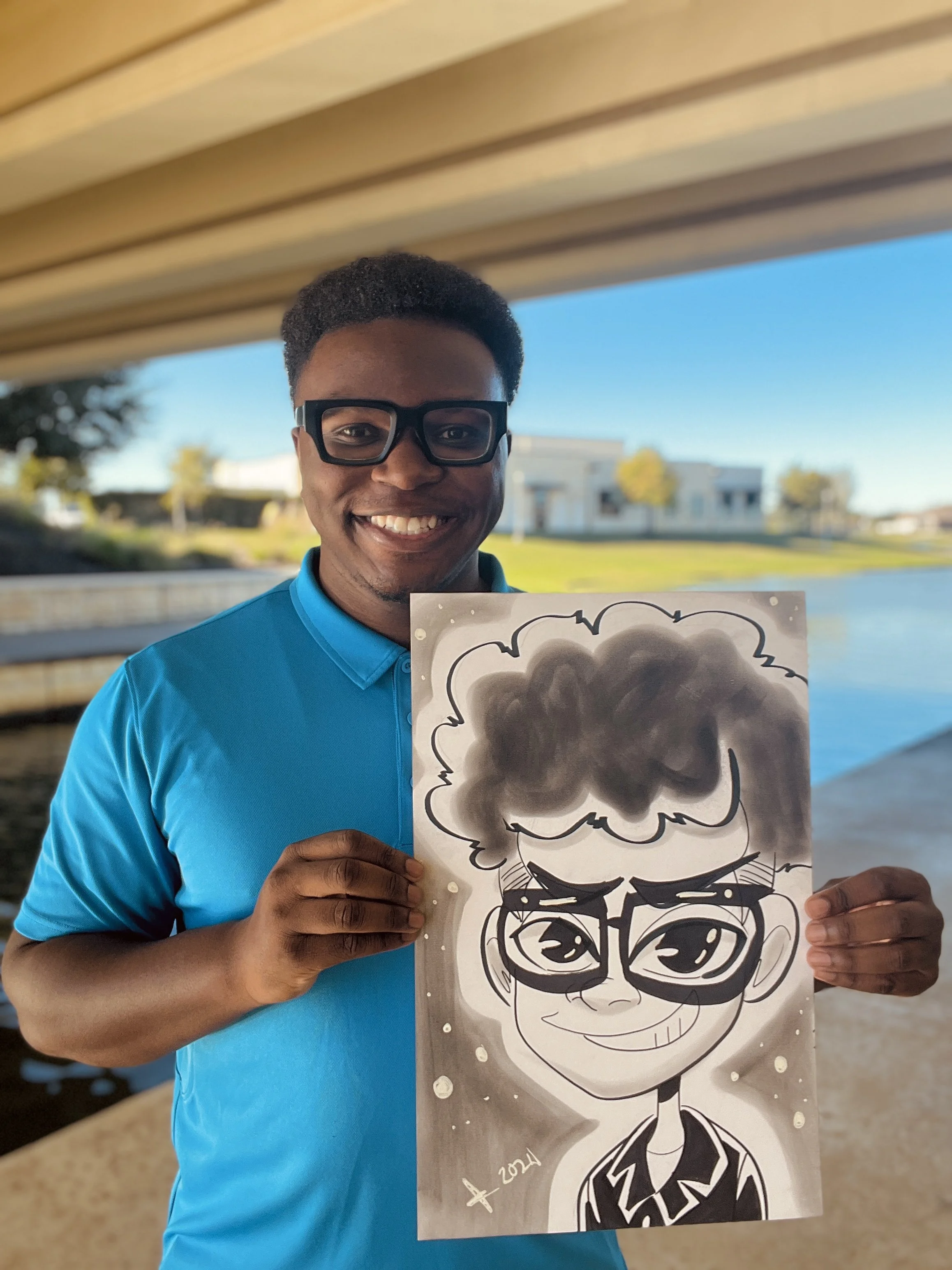 I’ve delivered caricature sessions in Spring, The Woodlands, Tomball, Katy, Magnolia, and Cypress, TX among other surrounding areas and I am looking forward to serving your community as well!